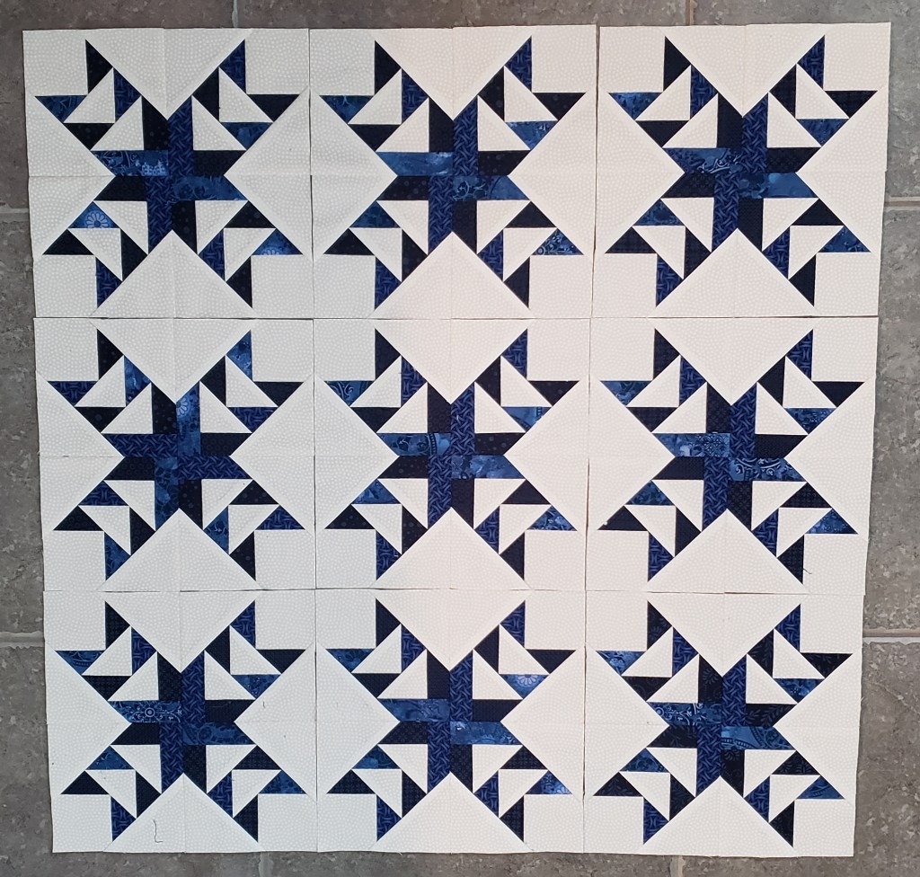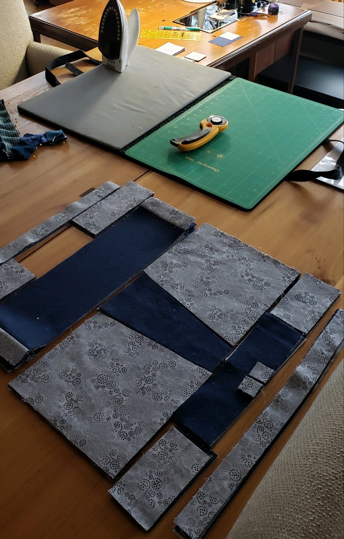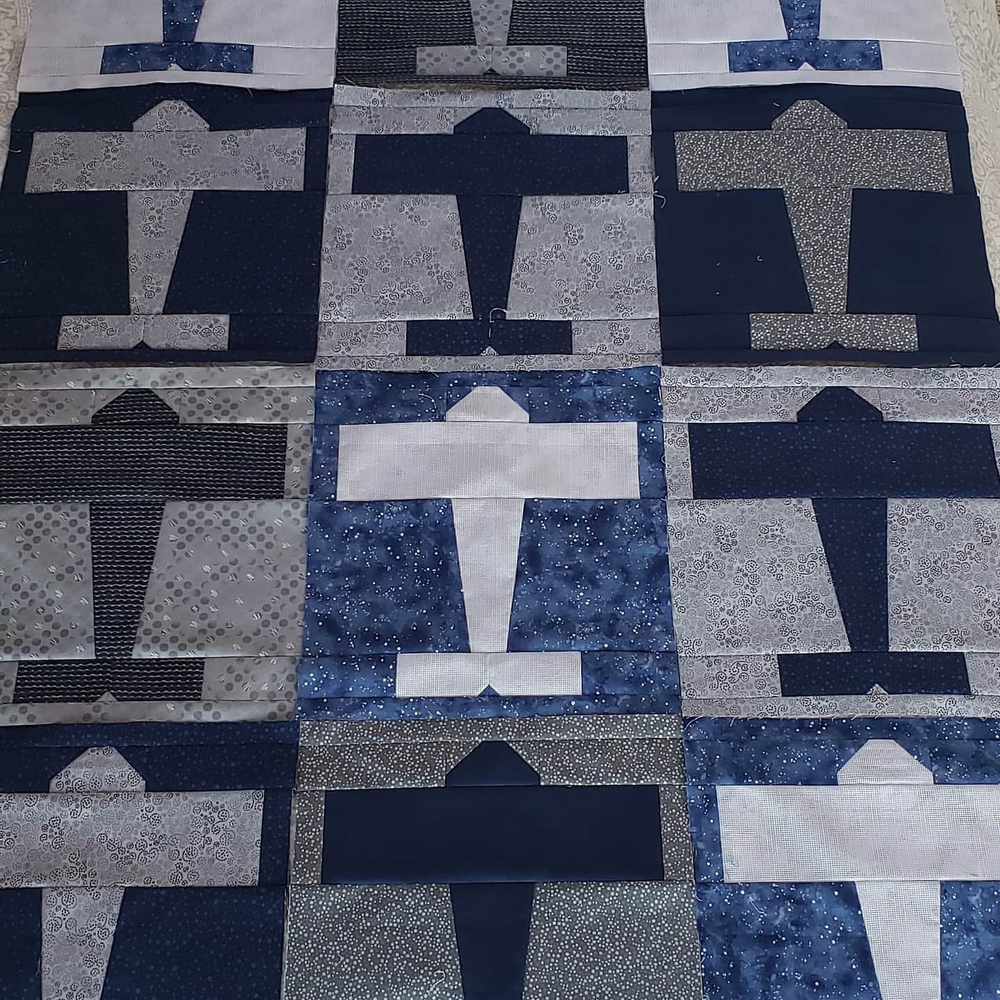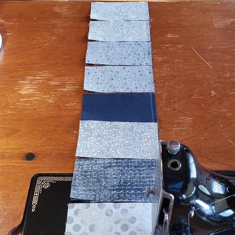 And slowly they are coming together. Our daughter in law requested navy and gray, of which I had much in my stash. I did find some fun new fabrics to throw in.