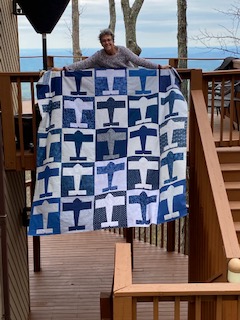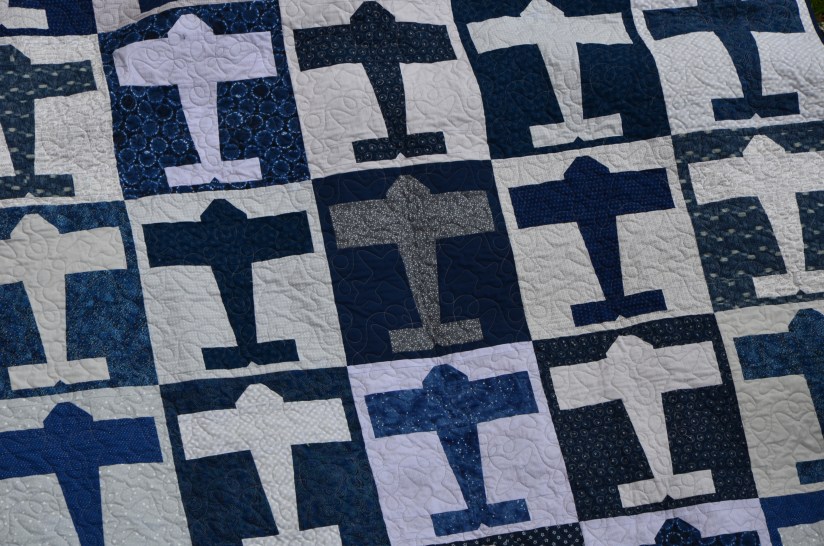 I chose an airplane design by Deb Geissler to quilt the plane quilts and loved how the stitched planes fit inside the plane blocks.