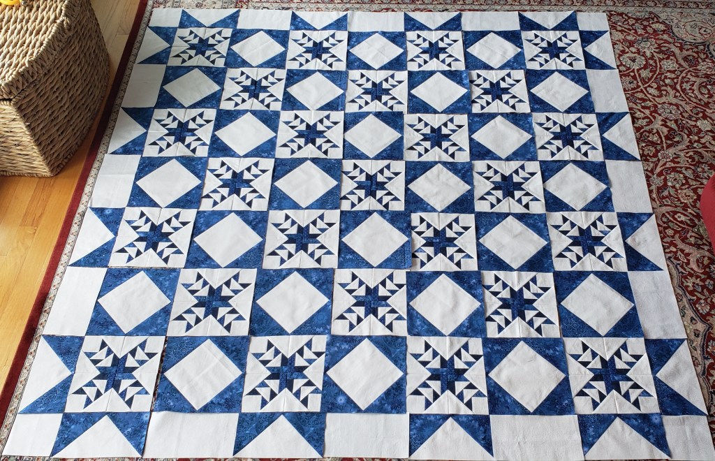 Need to add this even though it’s not quilted yet; I have written about it through the year.  Finished it for American Patch Works UFO Challenge on the last day of April.