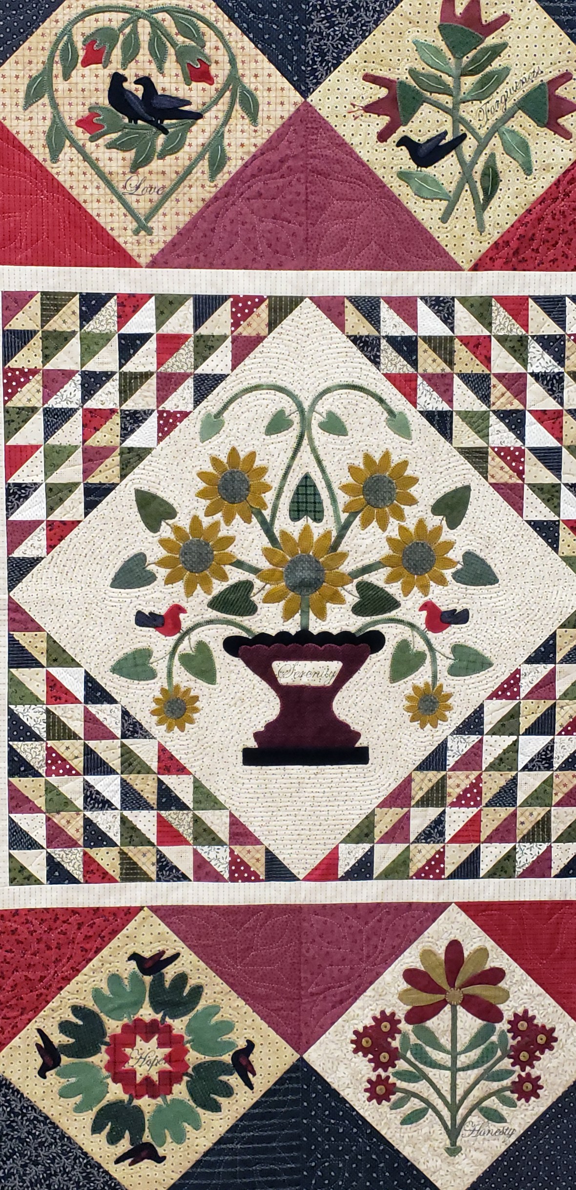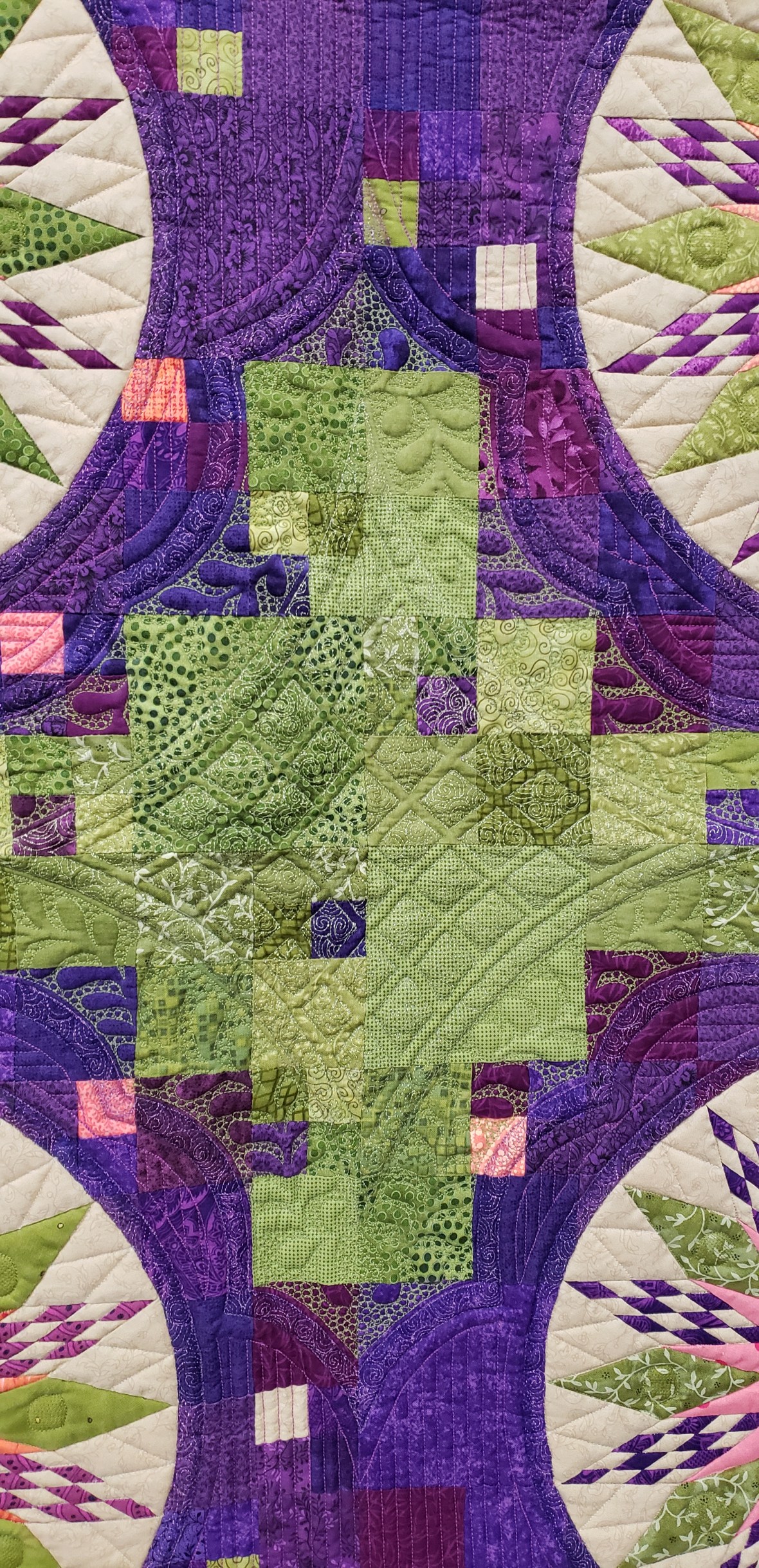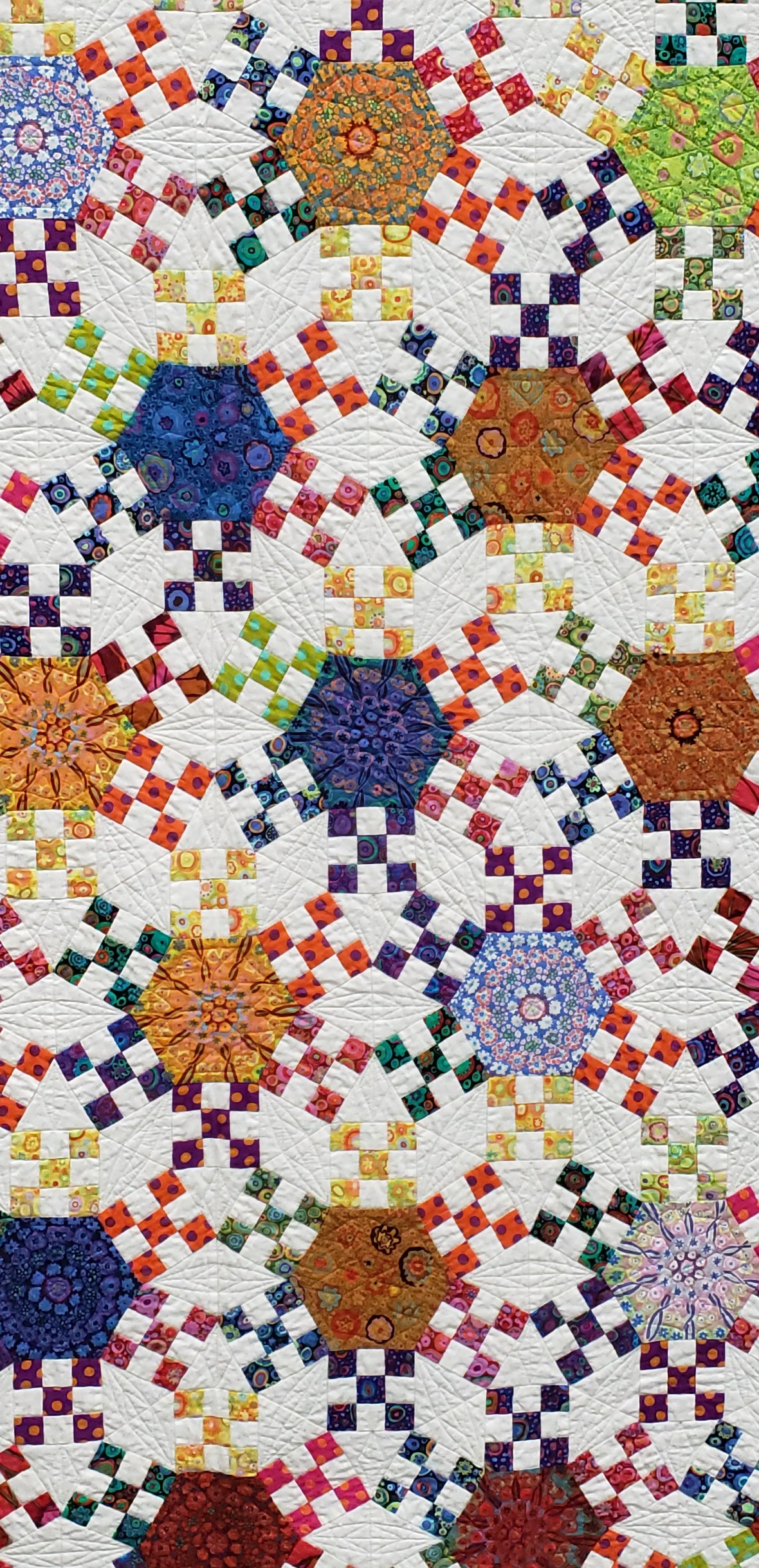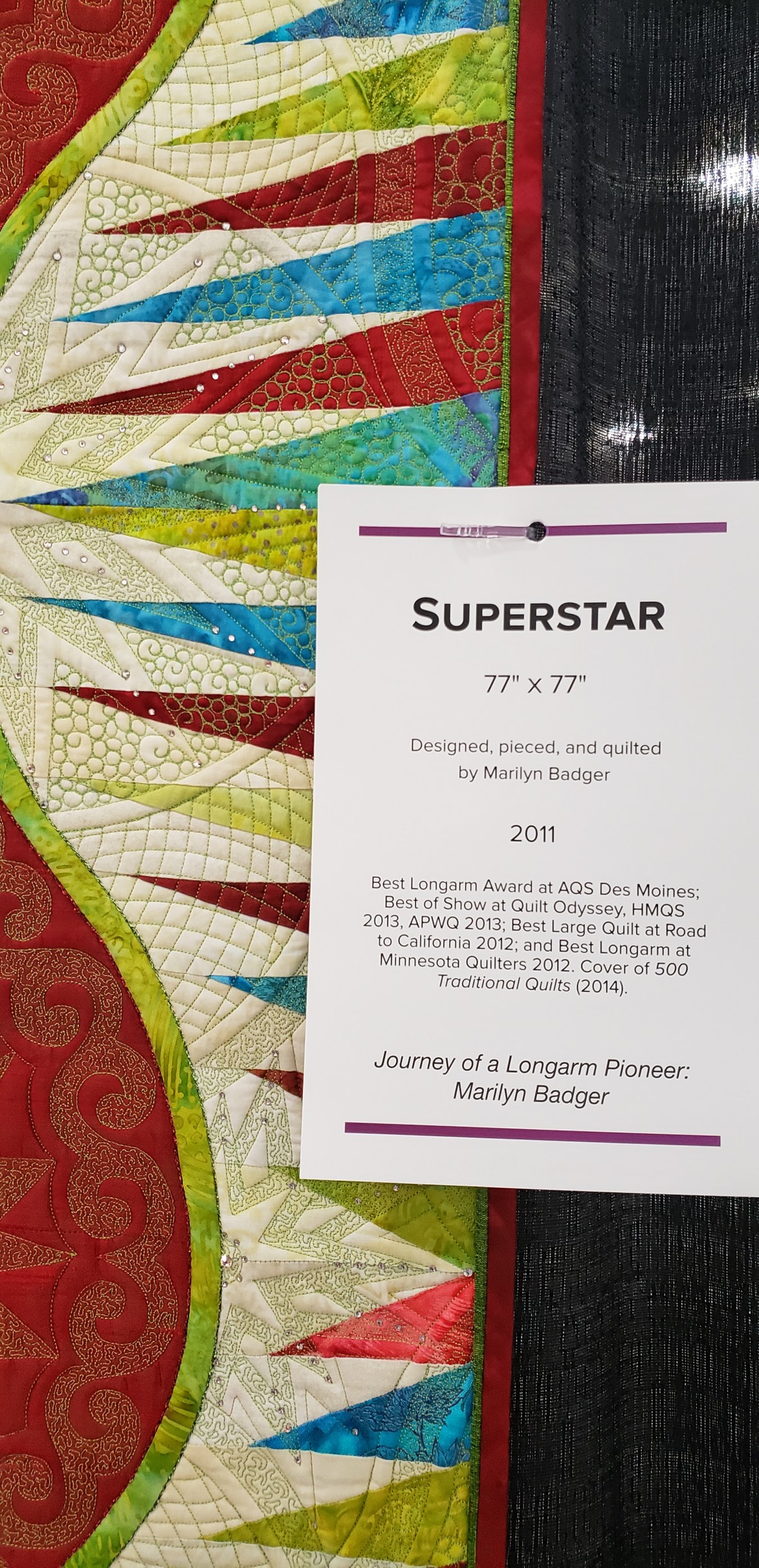 Finally it was time to arrange the blocks and sew them up. And I began dreaming of Jake’s face for the quilting design. This top hung in my basement for several months as I navigated copyright infringement and designer requests. I am happy to say the time spent was worth it to do it right!