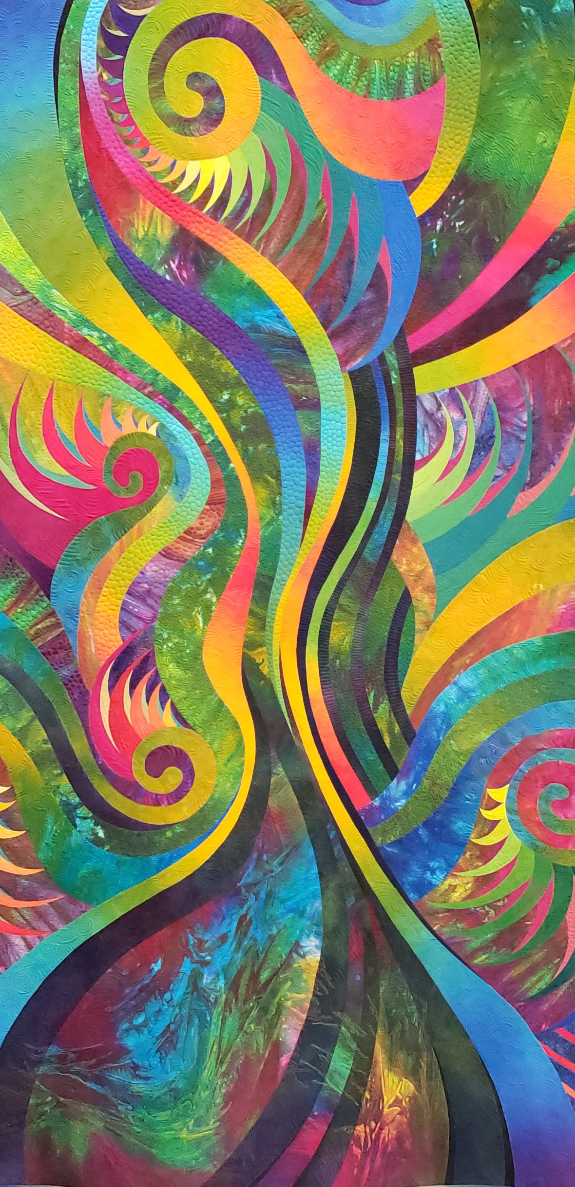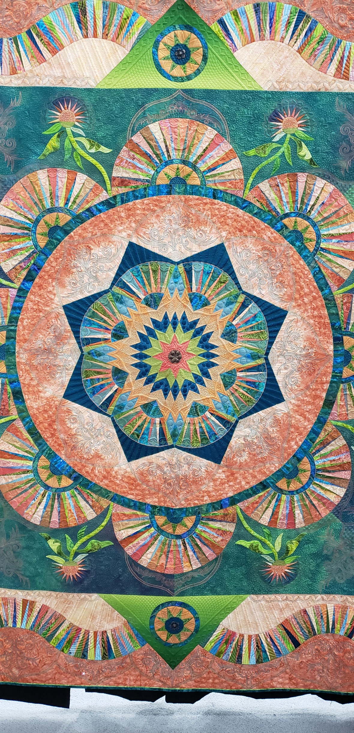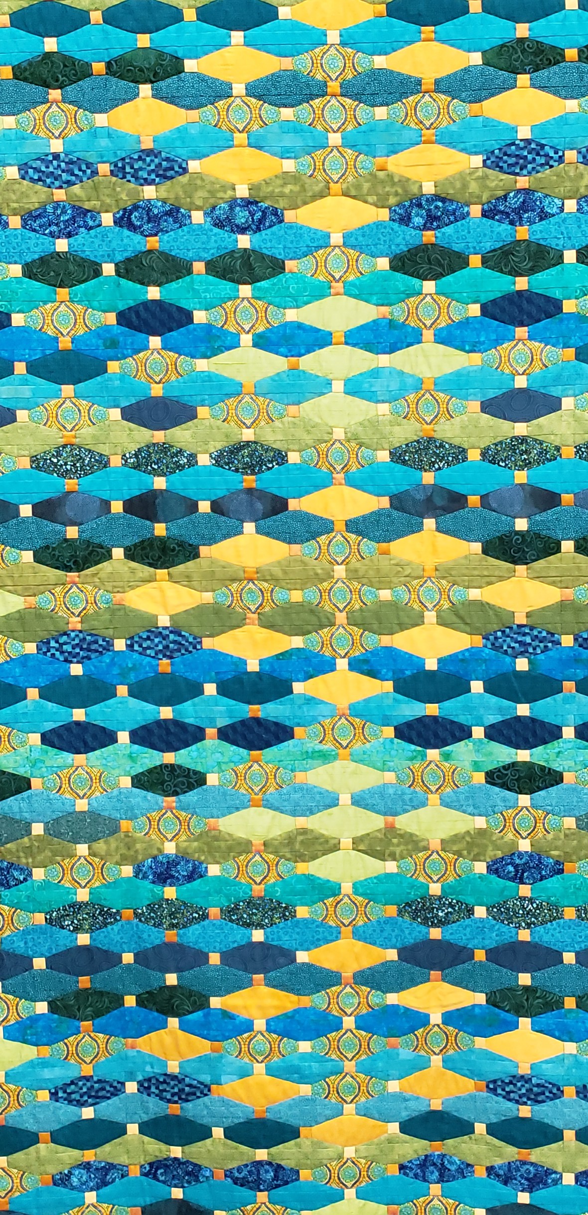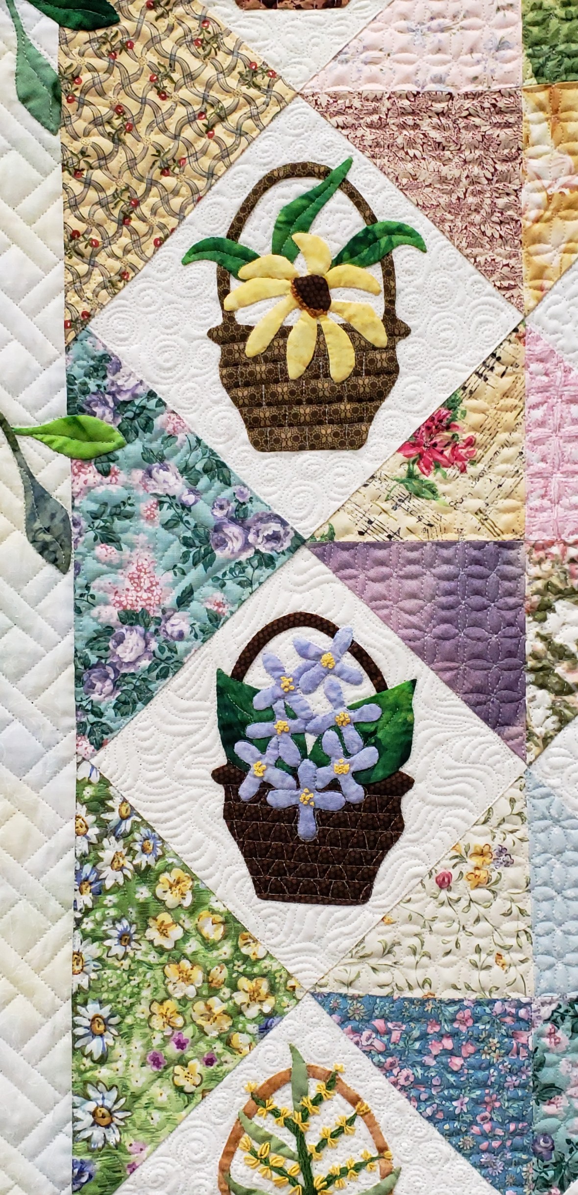 Finally it was time to arrange the blocks and sew them up. And I began dreaming of Jake’s face for the quilting design. This top hung in my basement for several months as I navigated copyright infringement and designer requests. I am happy to say the time spent was worth it to do it right!